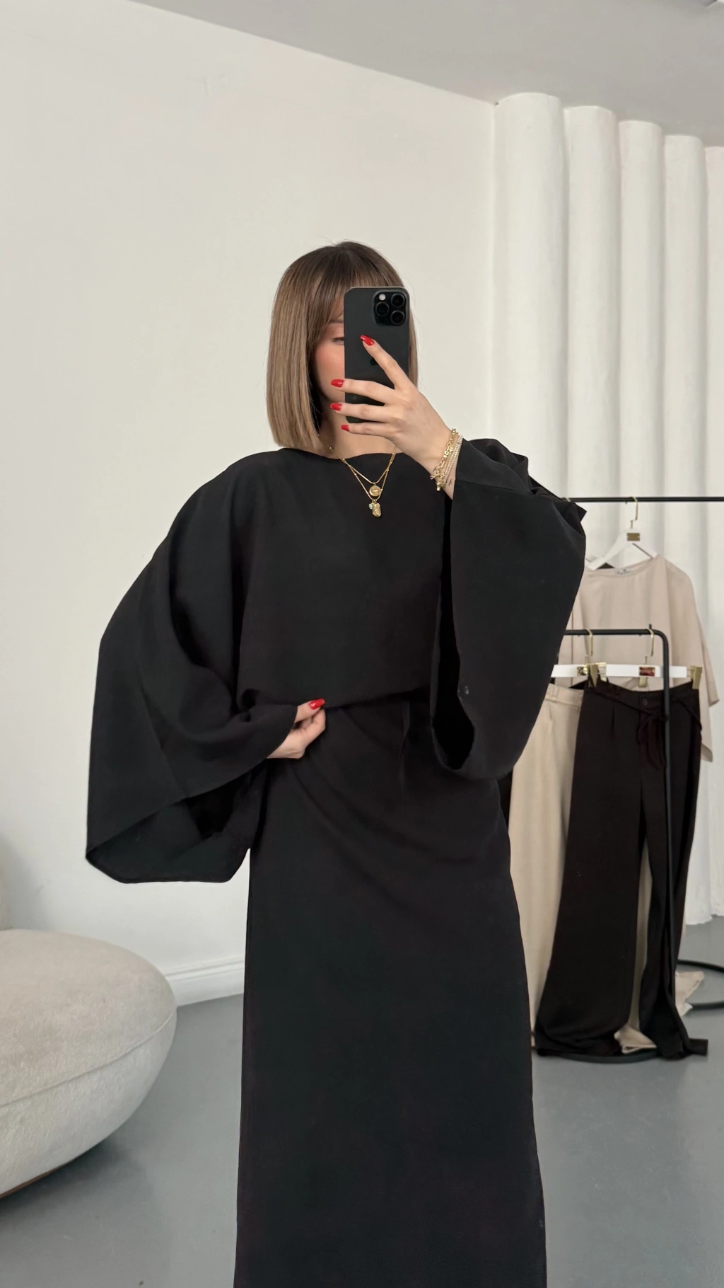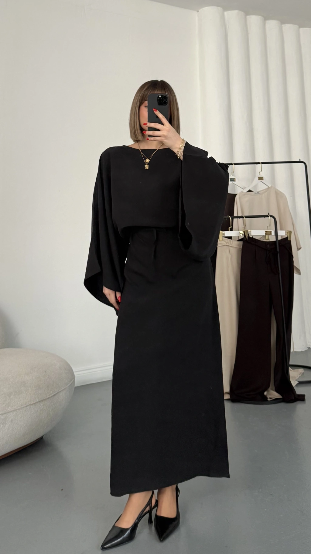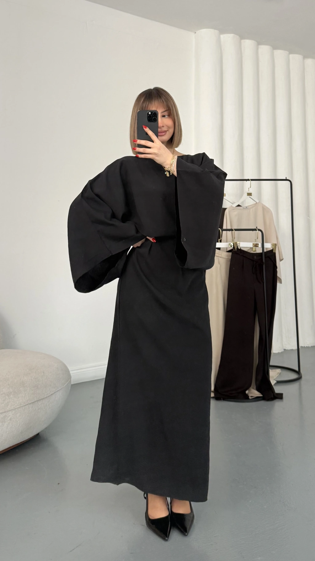Sila Yarasa Kol Elbise - Siyah
