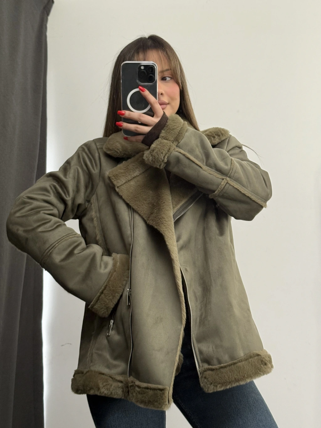 Sky Kürklü Ceket - Haki
