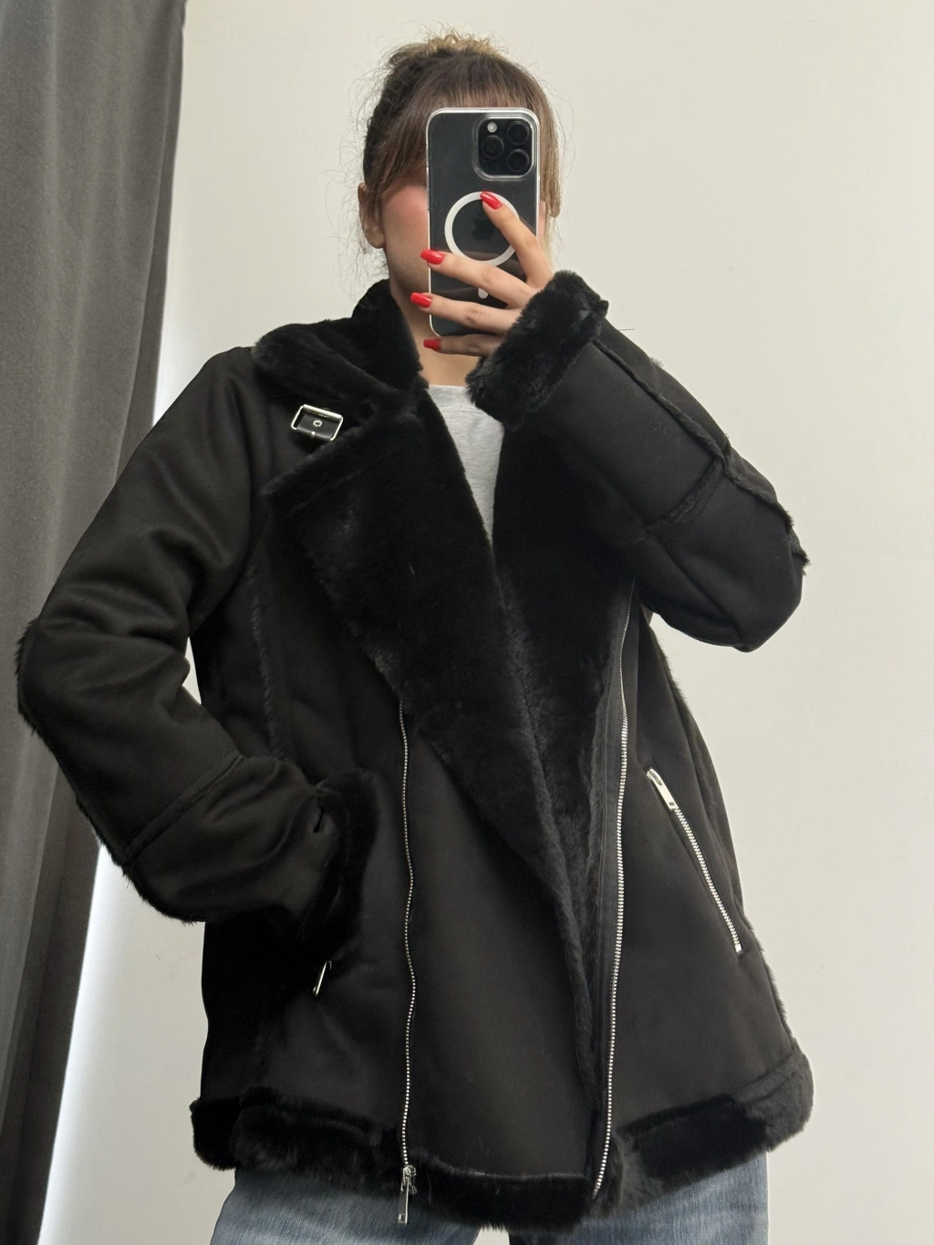 Sky Kürklü Ceket - Siyah