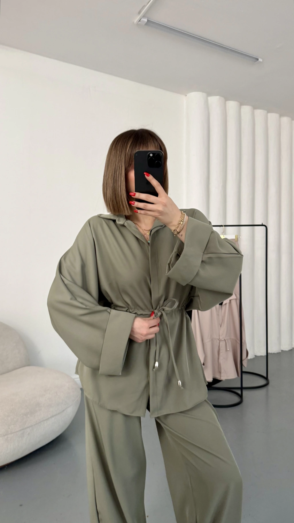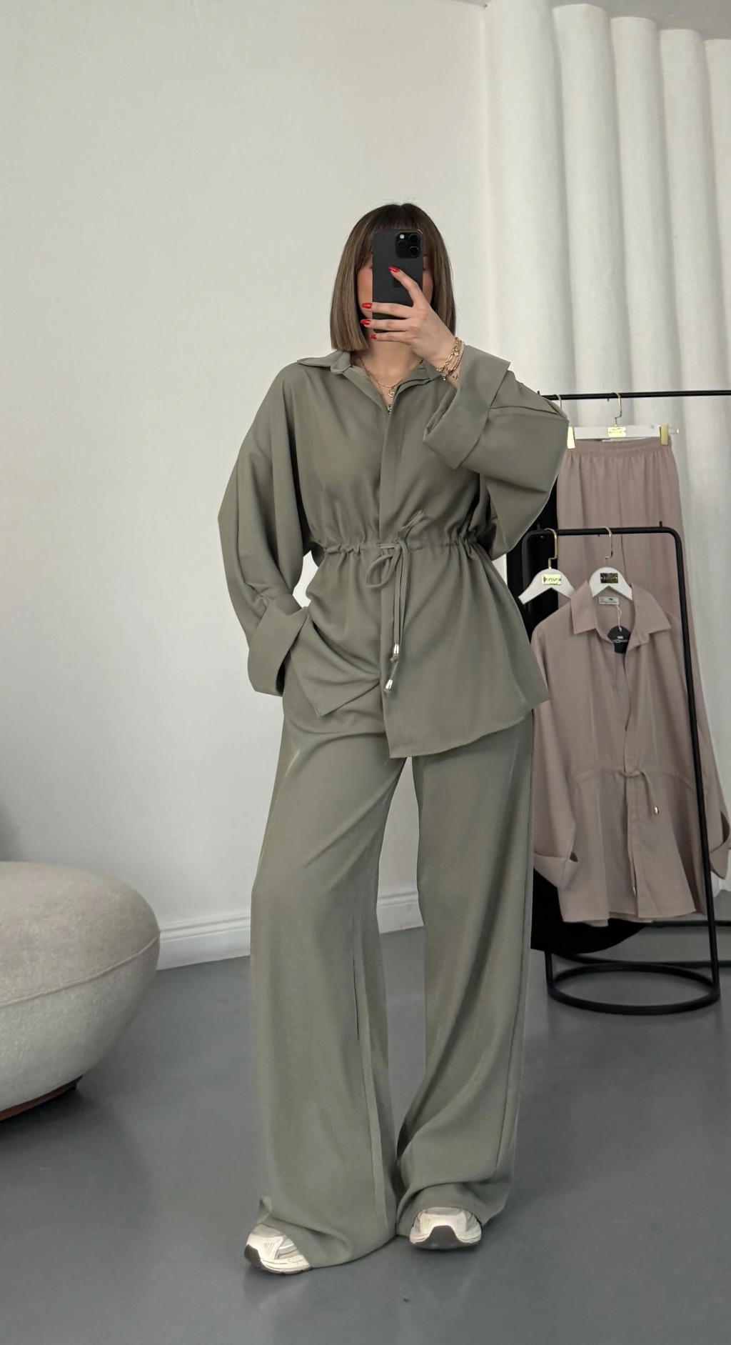 Tina Bel Büzgülü Gömlek Takım - Haki