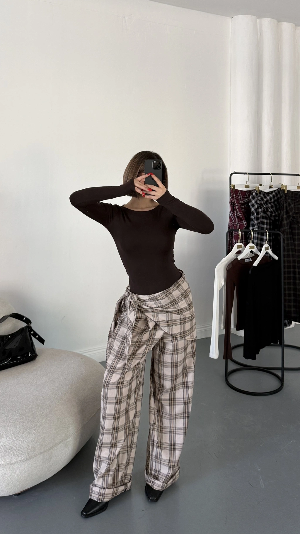 Valerie Bağlamalı Ekose Pantolon - Bej