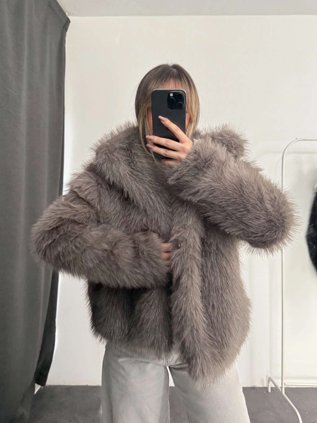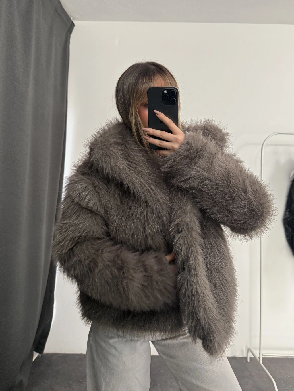 • Nona Butik Siyah Lamine Kürklü Ceket, şıklığı ve sıcaklığı bir araya getiriyor.