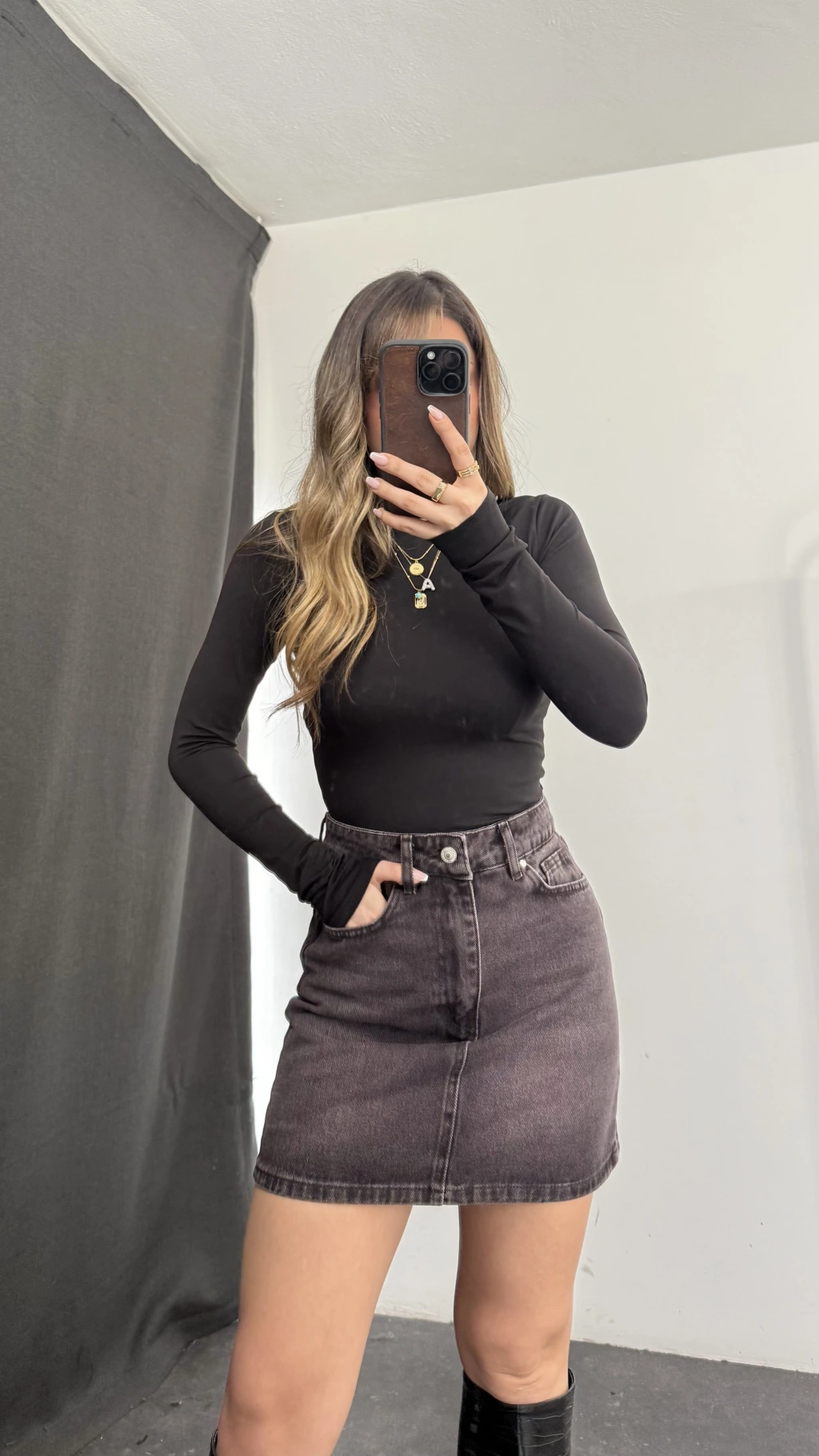 Vienna Mini Kot Etek - Kahve Yıkamalı