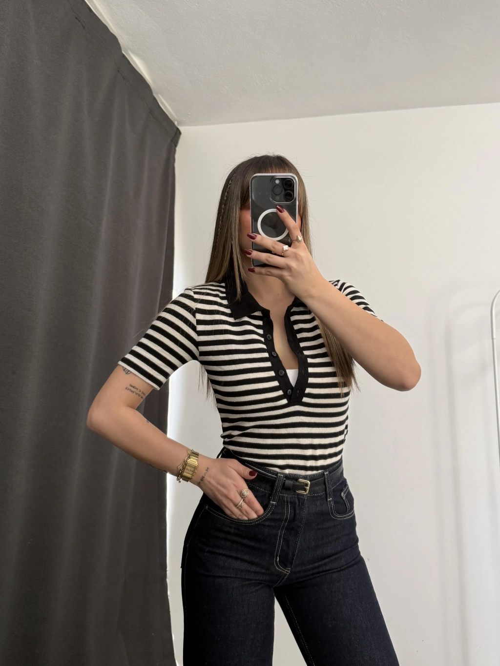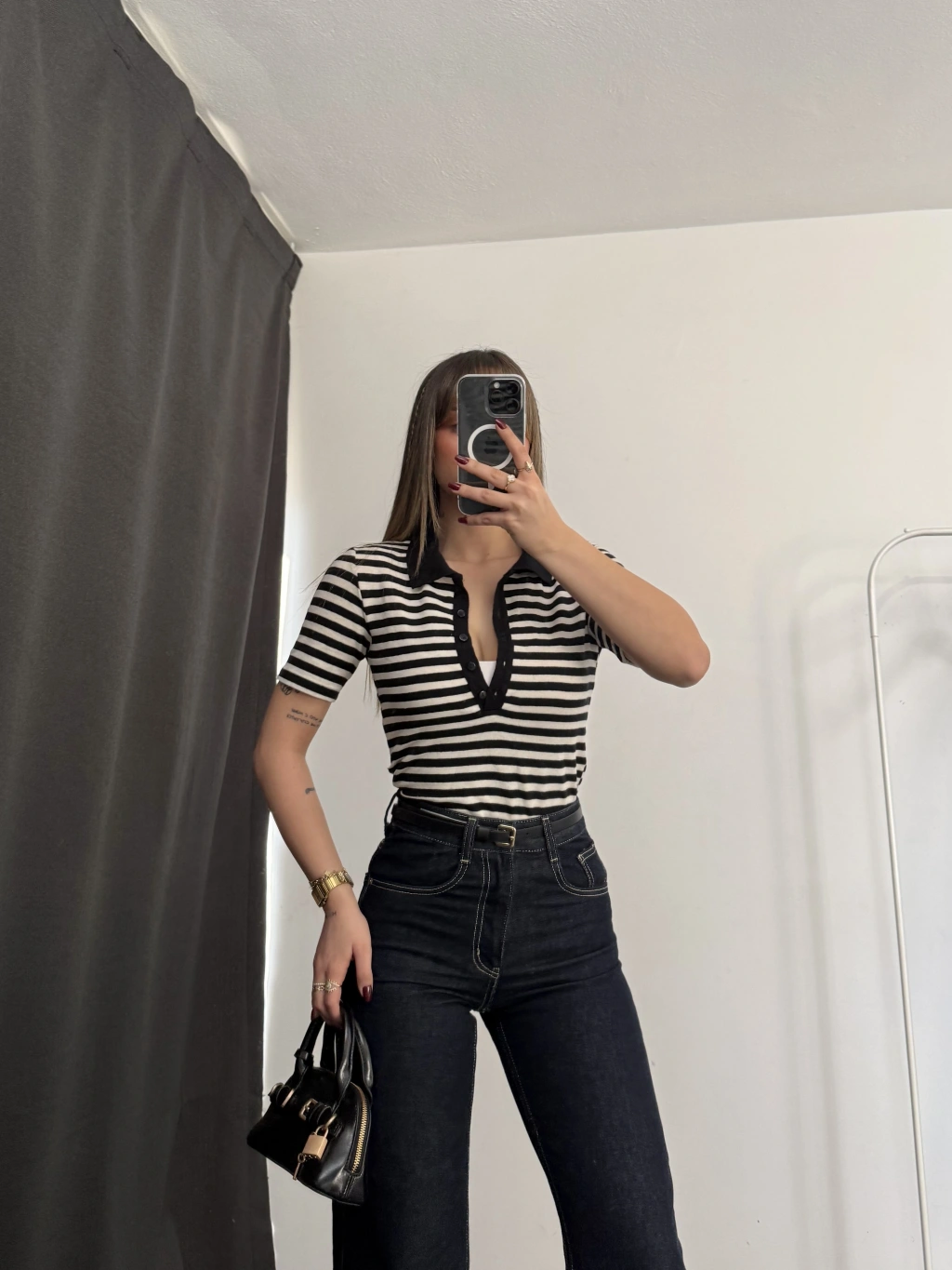 Wine Polo Taka Triko Bluz - Siyah