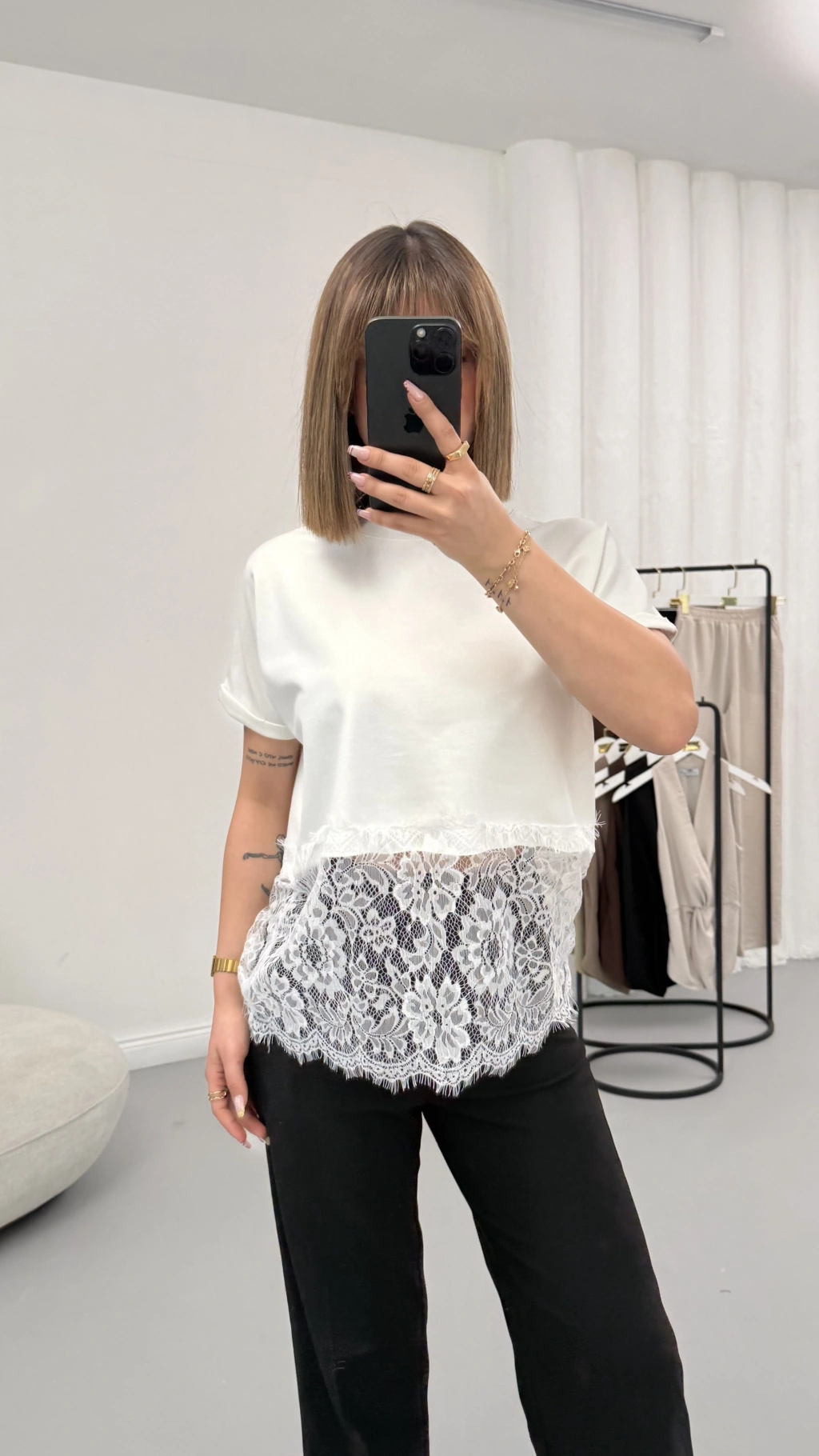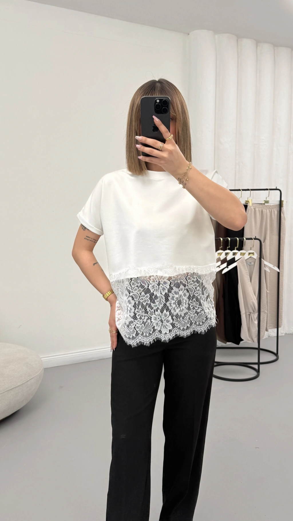 Zoe Dantel Detay Tshirt - Beyaz